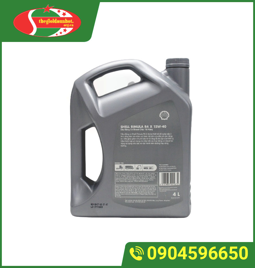 Shell Rimula R4 X 15W-40 là sản phẩm dầu động cơ shell đa cấp, chịu tải nặng đạt phẩm cấp cao API CI-4, giúp kéo dài thời gian thay dầu, chống mài mòn cho séc măng và xilanh. Giữ sạch động cơ và chống ăn mòn vượt trội so với các dầu động cơ khác.